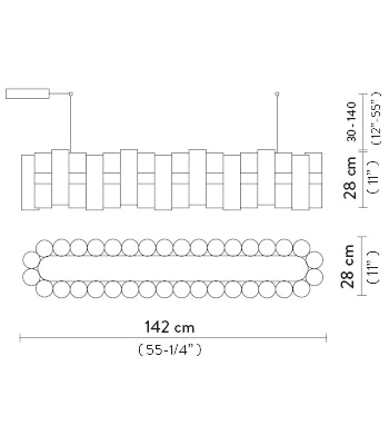 Talla:142 x 28 x h. 28 cm | Longitud del cable: min 20 max 140 cm - 6m on request